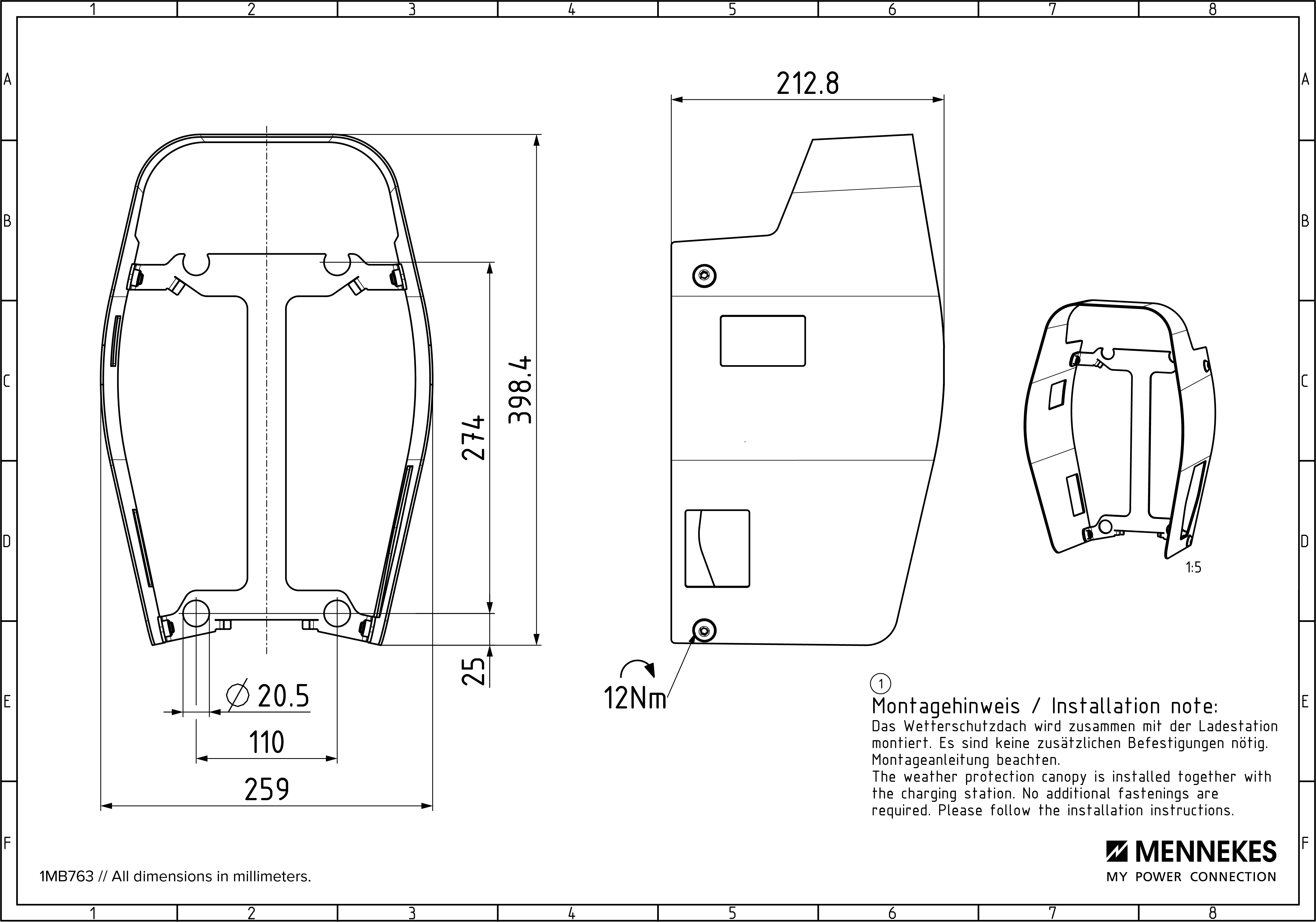 We recommend ordering the weather protection roof together with the purchase of an AMTRON® 4You or 4Business wallbox – especially for installations in semi-public or freely accessible areas where weather or mechanical influences pose a higher risk.