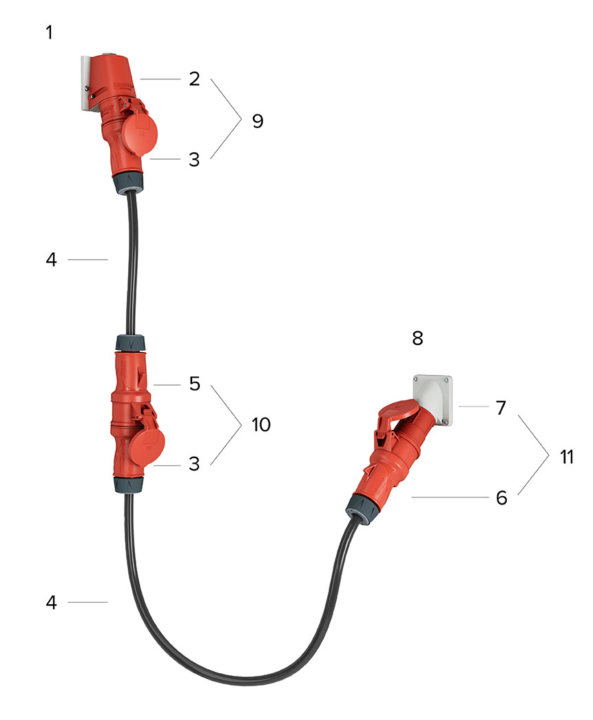 Our plugs and sockets are named according to industrial standard IEC 60309-1 (international norm for plugs and receptacles, connectors and appliance couplers):