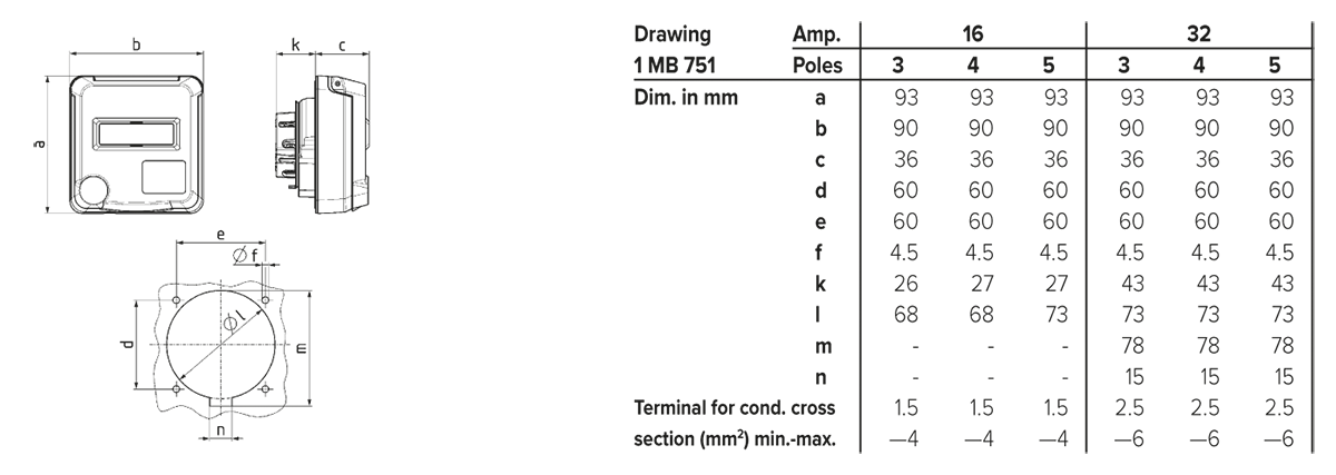 single, matching all Cepex flush mounted and panel mounted 16 A and 32 A receptacles, for the installation of single appliances and for vertical combination of any number of receptacles