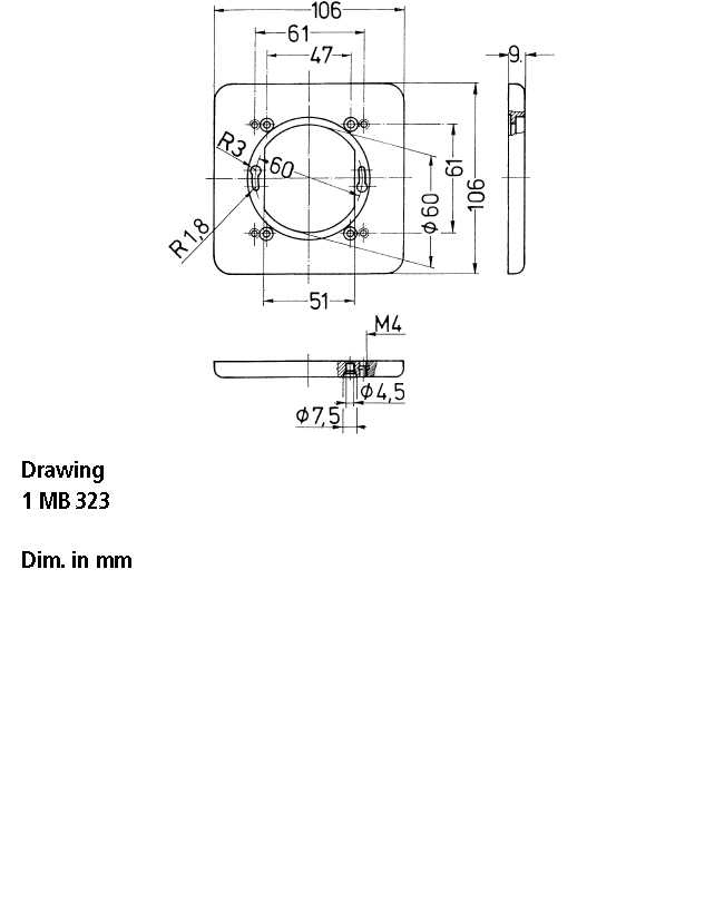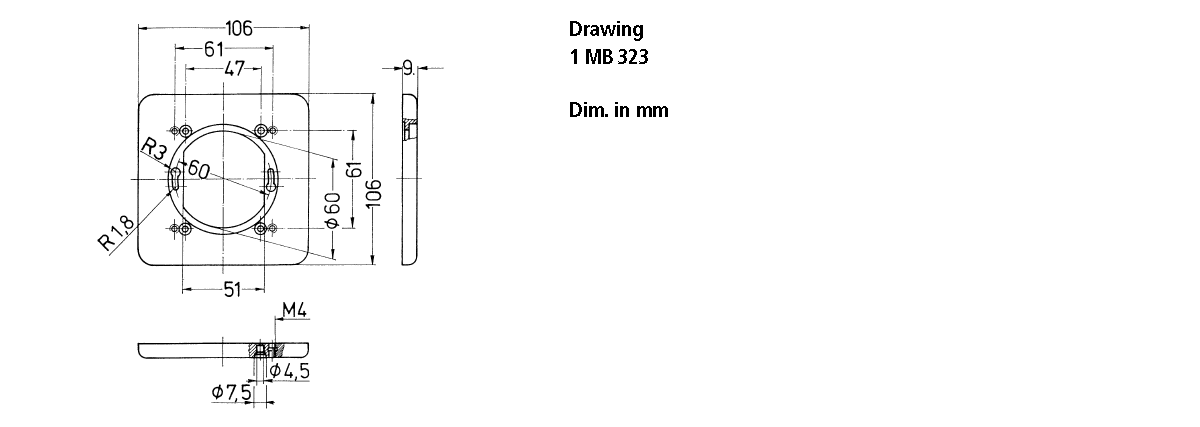 • flange: 106 x 106 mm/ fixing hole spacing: 61 x 61 mm