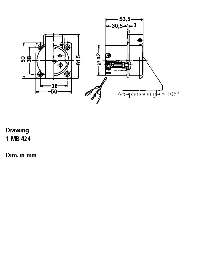 Fixing hole 38x38 mm