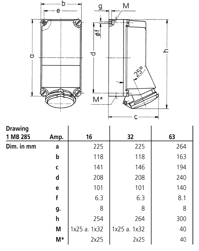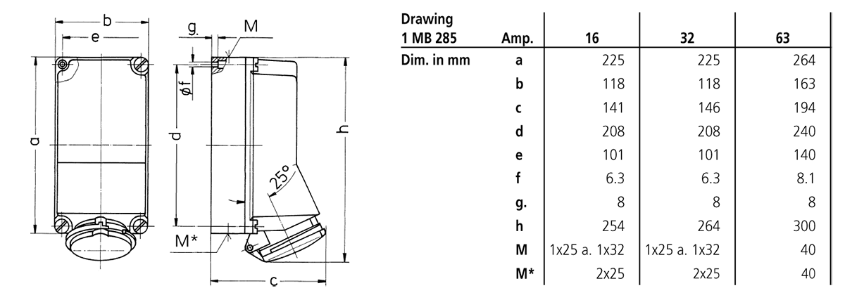 | CEE 63 A, 5 p, 400 V | 1 |